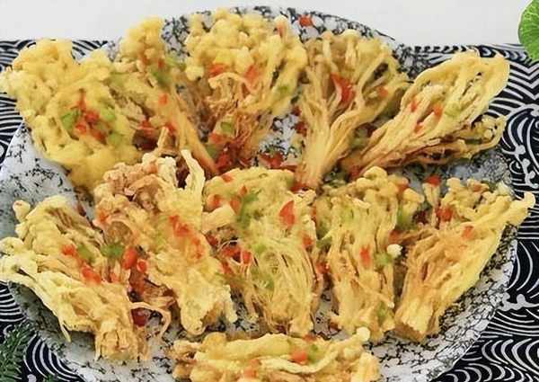 将金针菇放入鸡蛋中,均匀刷上一层蛋液。