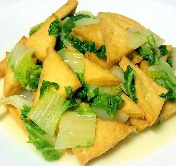 4.加入豆腐块。此时炒菜要清淡,用白菜汤炖豆腐;