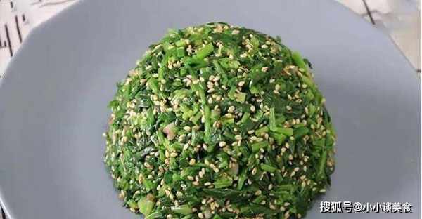 原料:菠菜一把,香油适量,盐适量,白芝麻适量。