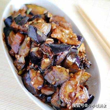 3.倒掉油,留底油,加入葱姜爆香;倒入准备好的酱汁炒香,加入茄子炒香;这一步先放盐,不要加盐,出锅前放入蒜茸,倒入水和淀粉,开大火快炒,蒜茸出香味后关火热量和服务。