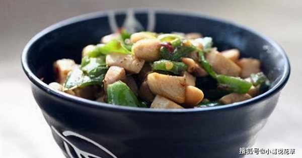 材料:杏鲍菇;胡椒;花生;辣椒酱