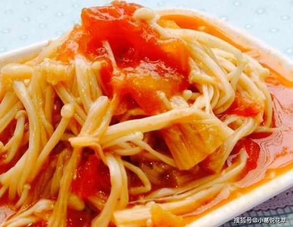 材料:西红柿2个、金针菇200克、盐适量、食用油适量