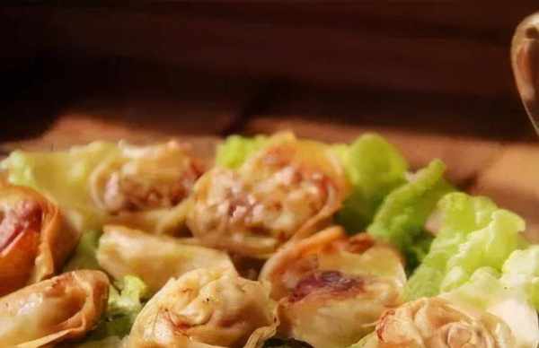 4、电热锅放适量油,将馄饨煎至两面金黄酥脆。