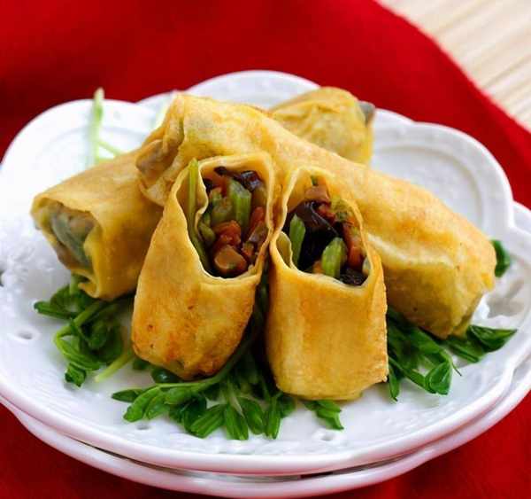 准备:1、肉末加入鸡蛋、干淀粉、适量的料酒、酱油、盐(后面盐不要加太多),拌匀后朝一个方向用力搅拌。香菇切丁,与肉馅拌匀。将豆炖牛肉的外壳一个一个撕掉,对半切开,擀成一个大致长方形的春卷,用少许水性淀粉封口。