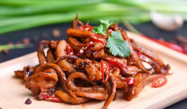 做法:1、鱿鱼要清洗干净,切成小块,然后盛入盘中待用。干辣椒洗净切小块,生姜去皮切片,大蒜去皮洗净待用。
