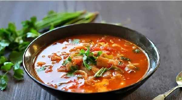 西红柿用开水预先烫一下,去皮切块。将鱼片用料酒、淀粉、少许胡椒粉和盐腌制。加热锅,加入约。2汤匙(30毫升)油,加入切好的姜片和蒜末炒香,加入切好的西红柿炒香,加入番茄酱一起炒,加入适量开水。烧开,豆腐切片,烧开,加入鱼片煮至变色,加盐调味。