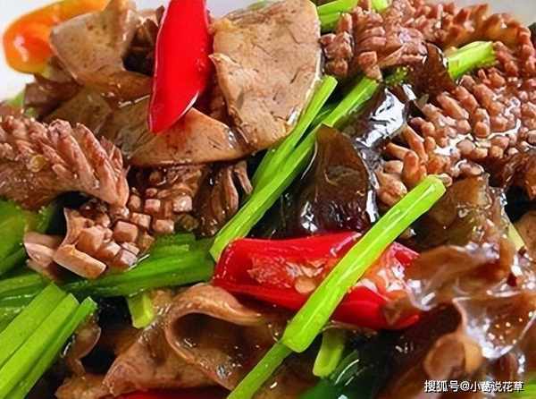 原料:猪肉80克,猪肝100克;原料:青蒜30克,洋葱20克,泡椒20克,泡姜16克,海鲜酱20克,蒜蓉辣椒酱5克,香草4克,香菇酱油8克。醋、鹰嘴豆粉3克、盐3克、料酒2克、味精2克、玉米淀粉2克、白胡椒粉1克