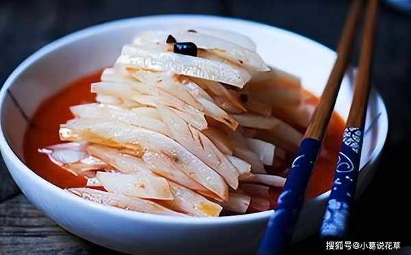 配料:莲藕、红花油2汤匙、米醋1汤匙、豆豉1汤匙、盐1/3茶匙、糖5茶匙