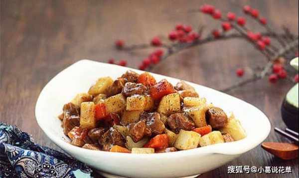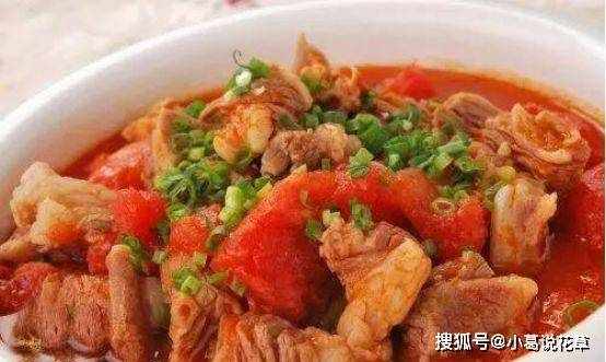 7、铁锅烧热少量油,爆香葱、姜,倒入西红柿,炒2分钟,倒入炖好的牛肉,大火炖3分钟。