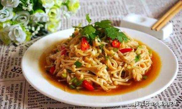 材料:金针菇250克,红辣椒1个,大葱少许,蒜2瓣,盐1/3茶匙,糖1/3茶匙,蚝油1汤匙,生抽1汤匙,生抽1茶匙辣椒油