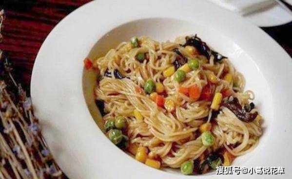 3、热锅放油烧热,加入胡萝卜和青豆炒1分钟,再加入玉米和蘑菇翻炒1分钟。锅中加入半小碗水、盐、生抽和蚝油搅拌均匀,然后倒入捞出的面条,盖上锅盖焖2分钟左右,揭盖用筷子夹起抚摸面条,使其与配料均匀混合。然后火准备收集树液。