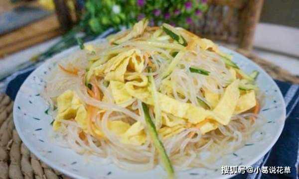 材料:粉丝1条、鸡蛋1个、黄瓜1条、胡萝卜1根、生抽3汤匙、醋2汤匙、白糖1匙、香油