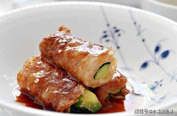 原料:猪肉片150克,黄瓜一小条,酱油一大勺,白芝麻适量,盐适量