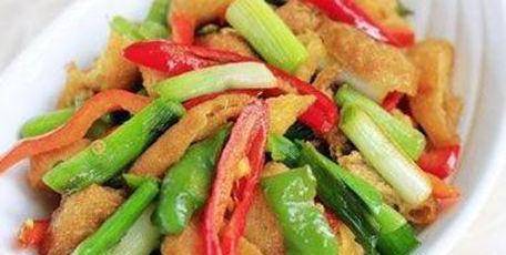 配料表:青蒜、炸豆腐、青椒、红椒、姜、植物油、盐、鸡精、酱油