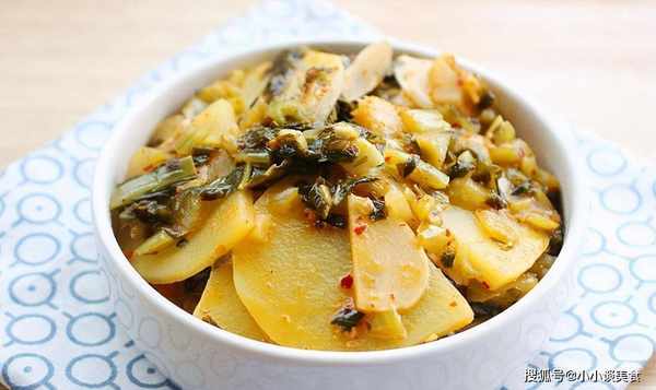 材料:土豆600克,酸菜120克,植物油适量,盐、姜、胡椒粉适量