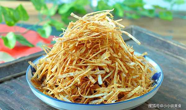 Step5边搅拌边用中火继续炸至金黄,捞出。将芋头丝全部炸好后捞出,放在吸油纸上吸油。将它们放在盘子上后,撒上盐和胡椒粉即可食用。我喜欢粘稠的番茄酱。脆脆的,当点心当饮料都很棒!