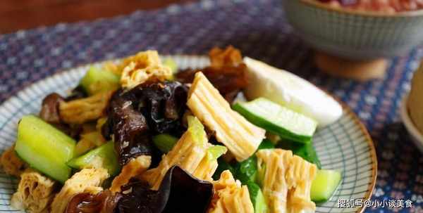 做法1、腐竹和香菇泡软,黄瓜和腐竹切成菱形,香菇和大葱备用。