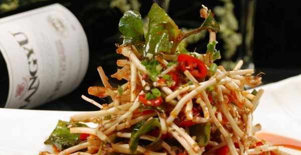 配料:浙尔根150克,植物油15毫升,盐适量,大蒜2瓣,姜2片,干红辣椒1个,生抽15毫升,米醋10毫升,醋7克糖