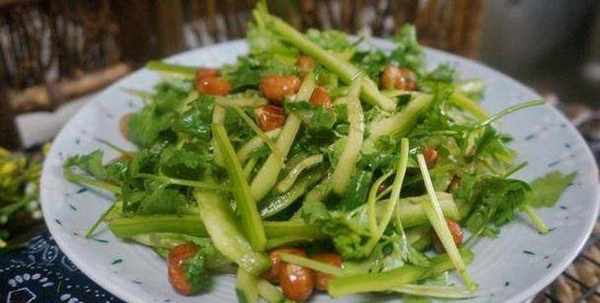材料:花椒1个、黄瓜1条、香菜1条、花生1粒、盐1克、生抽2勺、香油少许