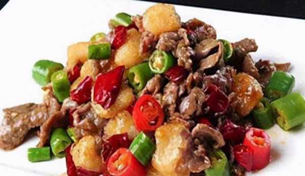 原料:牛肉;干红辣椒;姜;蒜;青椒;酱油;酱油;胡椒;原粉;胡椒;沸酒