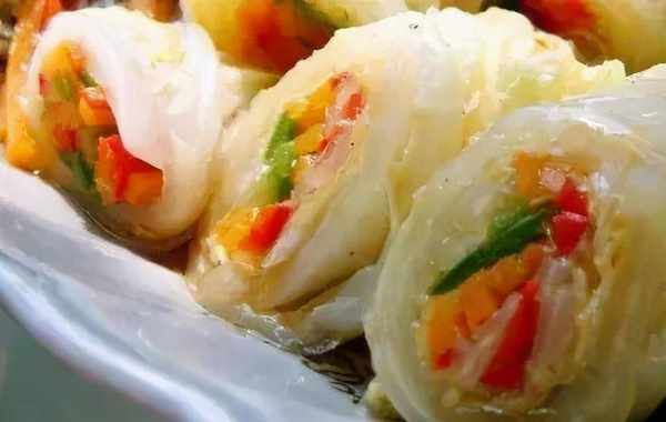 做法:1、选择直径7厘米左右的卷心菜,切成8厘米左右长的段,竖放在圆盆里,上笼用大火蒸熟,捞出放入一个大汤碗;