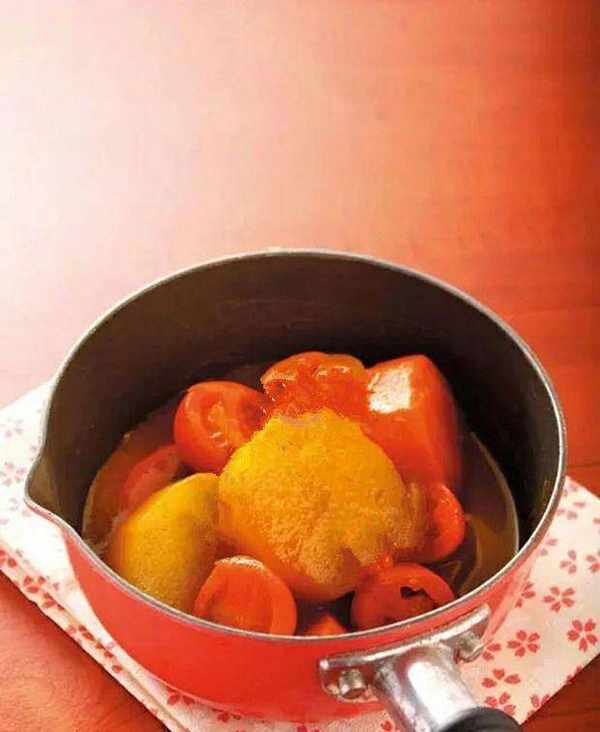 3)加入清水拌匀,以大火烧开,转小火煮约30分钟至萝卜熟透,再加入圣女果继续煮约3分钟。
