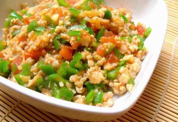 2、锅里放一汤匙油,3熟后,放入瘦肉翻炒至变色,捞出放入;