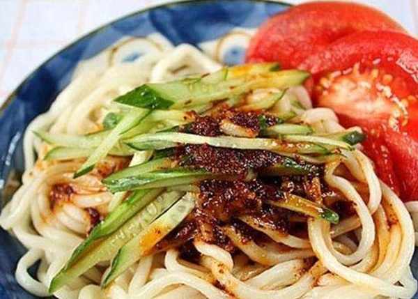 6、冰面上淋上蒜水,铺上黄瓜丝和西红柿。
