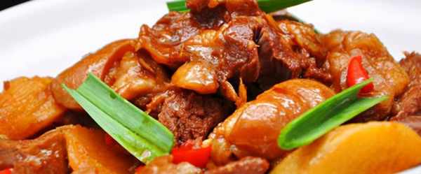 9.盖上锅盖焖煮1小时。期间注意多翻几次,以免锅底烧焦。加入萝卜块继续煮半小时。如果还有很多汤,可以改用大火,让汤干得更快。.
