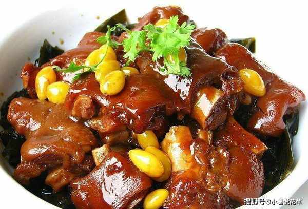 原料:猪蹄750克,盐、葱各13克,姜8克,香油25克,料酒25克,花椒5粒,冰糖50克,汤1300克。