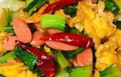 步骤:1.火腿切块,菜籽洗净,切小块,鸡蛋打碎备用