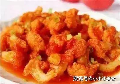 食材:菜花1棵、番茄2个、盐适量、糖少许、番茄酱适量