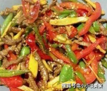 5、牛肉炒熟后,放入切成小段的杭椒,即可出锅。