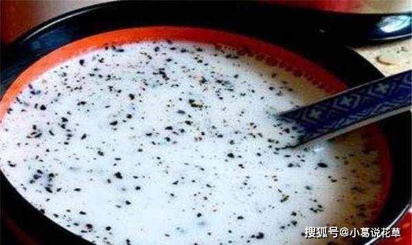 2、杏仁和黑芝麻一起碾碎,过开水,加入冰糖即可食用。