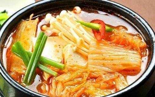原料:泡菜、五花肉、大蒜、生姜、白萝卜、洋葱、豆腐、卷心菜、胡椒粉、盐、清酒、香油、洋葱