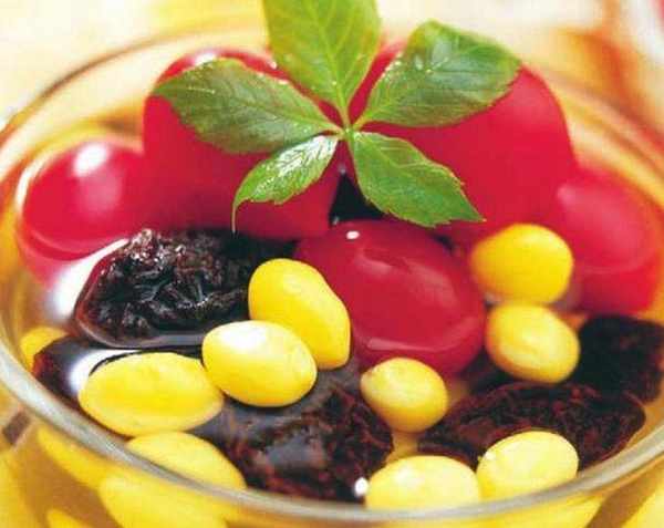 原 料 小番茄100克,银杏30粒,小西梅10粒。