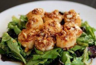 3.放入鲜贝,改大火翻炒;加入蒸鱼豉油继续炒;
