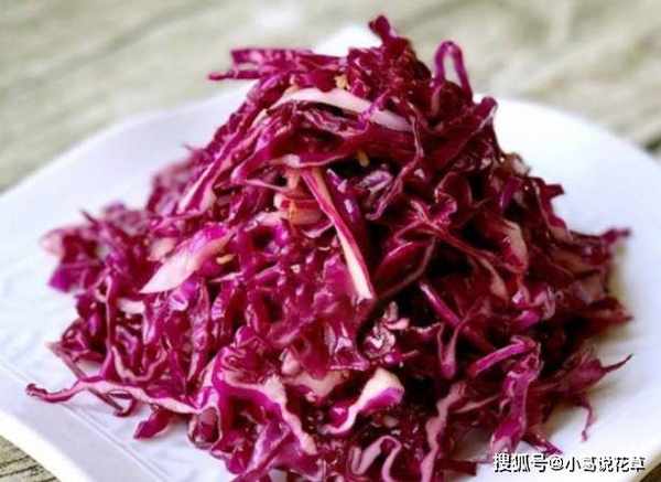 材料:紫甘蓝半个,生姜1小块,花椒20粒,盐1茶匙,白糖10克,醋1汤匙。
