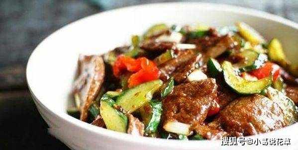2、原汁一碗:葱姜蒜+生抽+老抽+盐+糖+鸡精+淀粉+胡椒粉+少许纯净水;把黄瓜里的水沥干;猪肝入锅前加入淀粉,使猪肝酥软。3.锅里放油烧热,倒入猪肝炒+红辣椒+洋葱(辣椒和洋葱炒熟,猪肝就熟了),倒入盛有汁液的容器中煮(留一粒)少许),加入黄瓜+少许剩汁一杯,加入香油,最后,煮上一杯极品白酒(腥味全部消失),香喷喷的烤猪肝就完成了