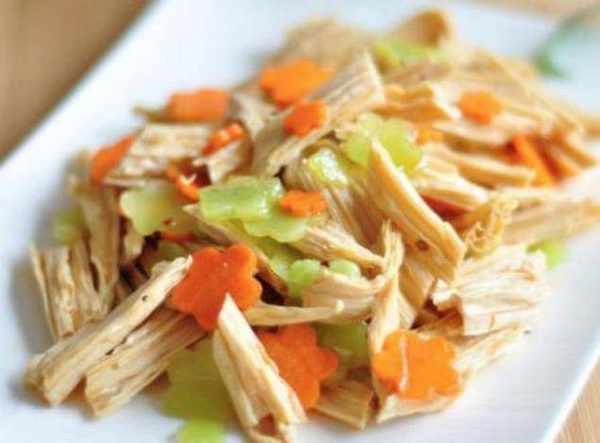 配料表:腐竹、生菜、胡萝卜、盐、鸡精、辣椒油、白酒、盐、鸡精、生粉、酱油