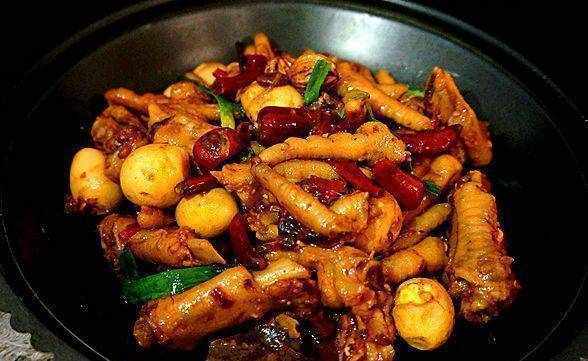 材料:凤爪500克,鹌鹑蛋20个,大蒜3克,姜3克,料酒,干辣椒,五香粉,老抽半勺,生抽半勺,生抽1小把大葱