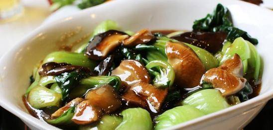 3、加入油菜籽、香菇和适量蚝油翻炒两分钟;