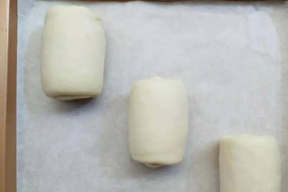 步骤13依次做好全部,有间隔的摆放在烤盘上,放在温暖湿润处发酵至1.5倍大