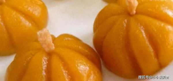 3、南瓜蒸熟后取出,捣成泥,加入粘泥粉和糖,揉成光滑的面团。