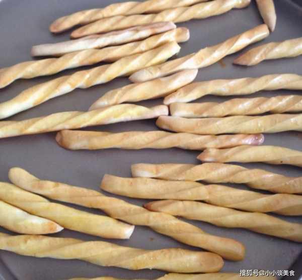 7、烤箱预热175度,然后把刷了蛋液的磨牙棒放入烤箱烤25分钟,中间翻动一次。
