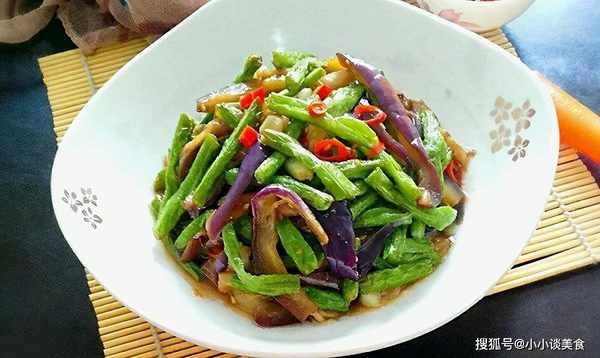 做法1、豆角洗净去蒂切段,茄子切条放入淡盐水中。