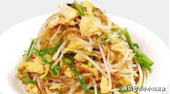4.锅里放油烧50%热,倒入腌好的肉丝,炒5秒,再倒入胡萝卜丝和粉条翻炒均匀,再倒入豆芽和韭菜,加一勺酱油,撒上适量的盐花,煮一分钟,最后倒入荷包蛋拌匀即可食用。一道香喷喷的炒菜就做好了!