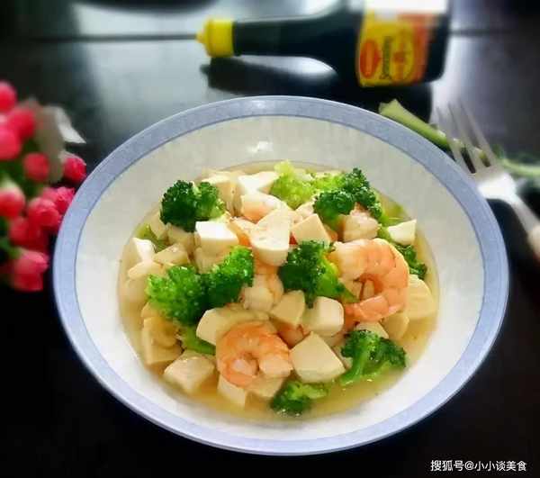 西兰花配豆腐和虾