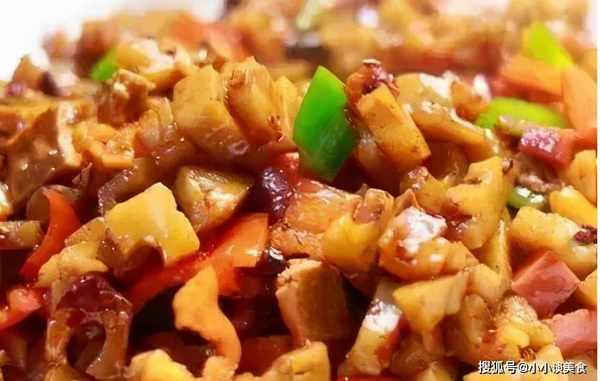 4、再起锅,锅中倒入适量花生油,小火烧热,放入蒜头和红辣椒炒香。5、倒入豆丁大火翻炒3分钟,将豆丁炒软,加入一勺盐调味,炒匀。