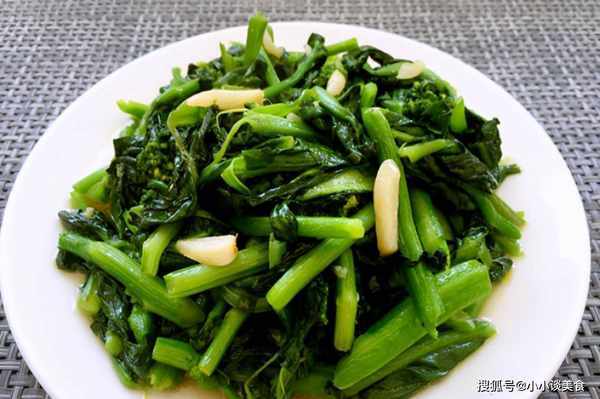 3、加入菜苔边炒边炒。